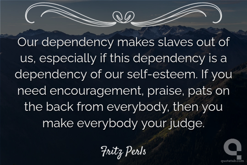 Our dependency makes slaves out of us, especially if this dependency is a dependency of our self-esteem. If you need encouragement, praise, pats on the back from everybody, then you make everybody your judge. Fritz Perls