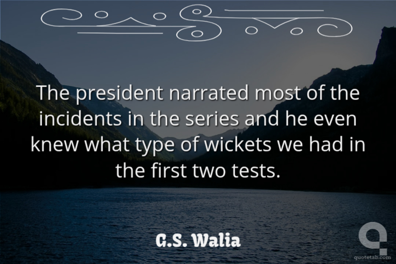 The president narrated most of the incidents in the series and he even knew what type of wickets we had in the first two tests. G.S. Walia