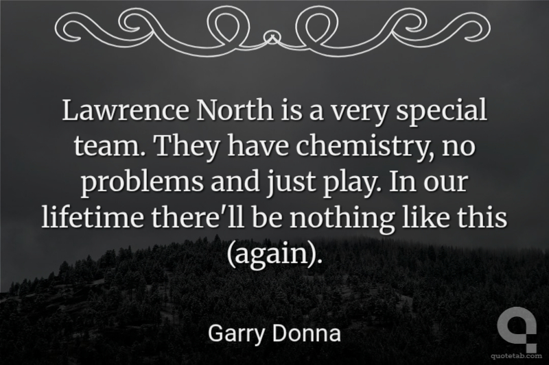 Lawrence North is a very special team. They have chemistry, no problems and just play. In our lifetime there'll be nothing like this (again). Garry Donna