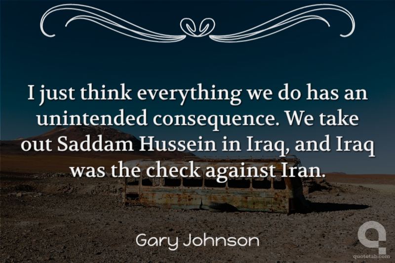 I just think everything we do has an unintended consequence. We take out Saddam Hussein in Iraq, and Iraq was the check against Iran. Gary Johnson