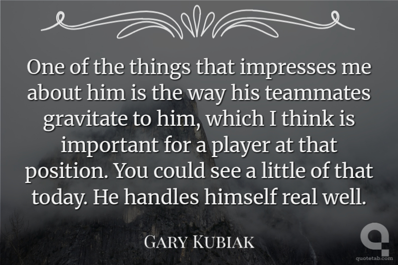 One of the things that impresses me about him is the way his teammates gravitate to him, which I think is important for a player at that position. You could see a little of that today. He handles himself real well. Gary Kubiak