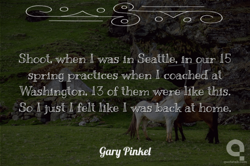 Shoot, when I was in Seattle, in our 15 spring practices when I coached at Washington, 13 of them were like this. So I just I felt like I was back at home. Gary Pinkel