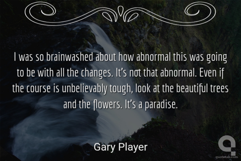I was so brainwashed about how abnormal this was going to be with all the changes. It's not that abnormal. Even if the course is unbelievably tough, look at the beautiful trees and the flowers. It's a paradise. Gary Player