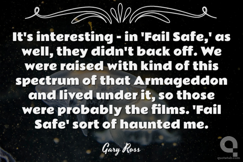 It's interesting - in 'Fail Safe,' as well, they didn't back off. We were raised with kind of this spectrum of that Armageddon and lived under it, so those were probably the films. 'Fail Safe' sort of haunted me. Gary Ross