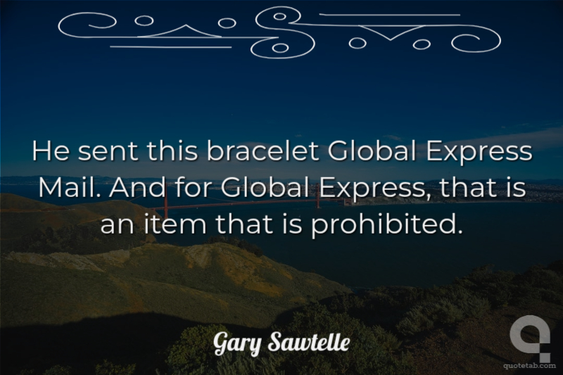 He sent this bracelet Global Express Mail. And for Global Express, that is an item that is prohibited. Gary Sawtelle