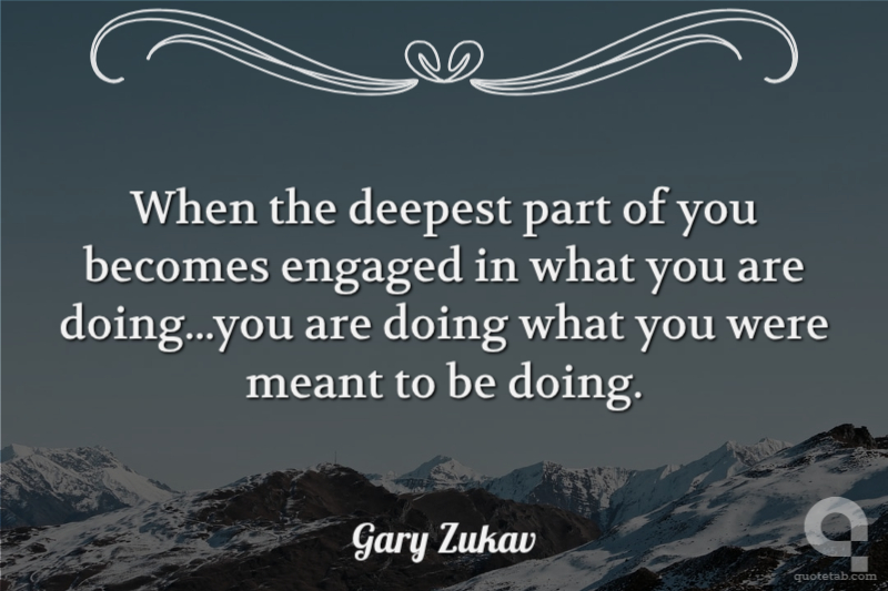 When the deepest part of you becomes engaged in what you are doing...you are doing what you were meant to be doing. Gary Zukav