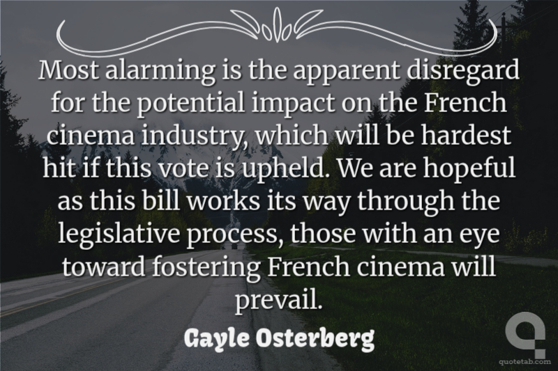 Most alarming is the apparent disregard for the potential impact on the French cinema industry, which will be hardest hit if this vote is upheld. We are hopeful as this bill works its way through the legislative process, those with an eye toward fostering French cinema will prevail. Gayle Osterberg
