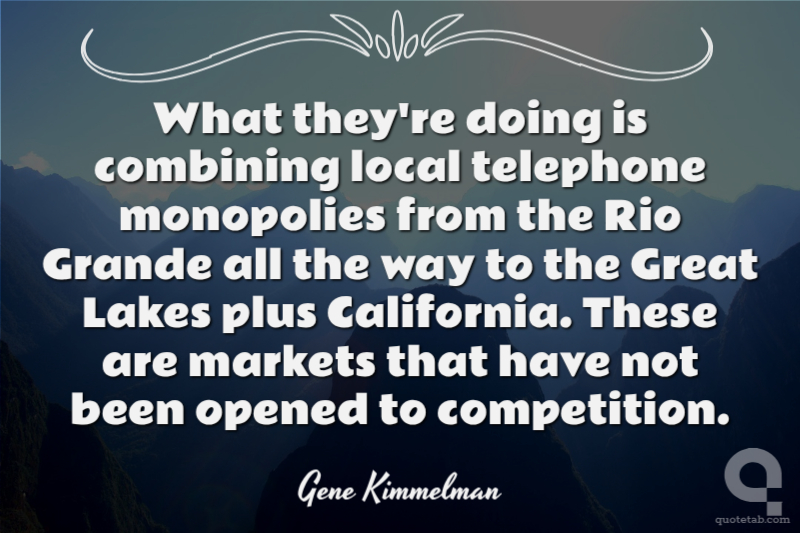 What they're doing is combining local telephone monopolies from the Rio Grande all the way to the Great Lakes plus California. These are markets that have not been opened to competition. Gene Kimmelman