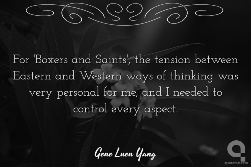 For 'Boxers and Saints', the tension between Eastern and Western ways of thinking was very personal for me, and I needed to control every aspect. Gene Luen Yang