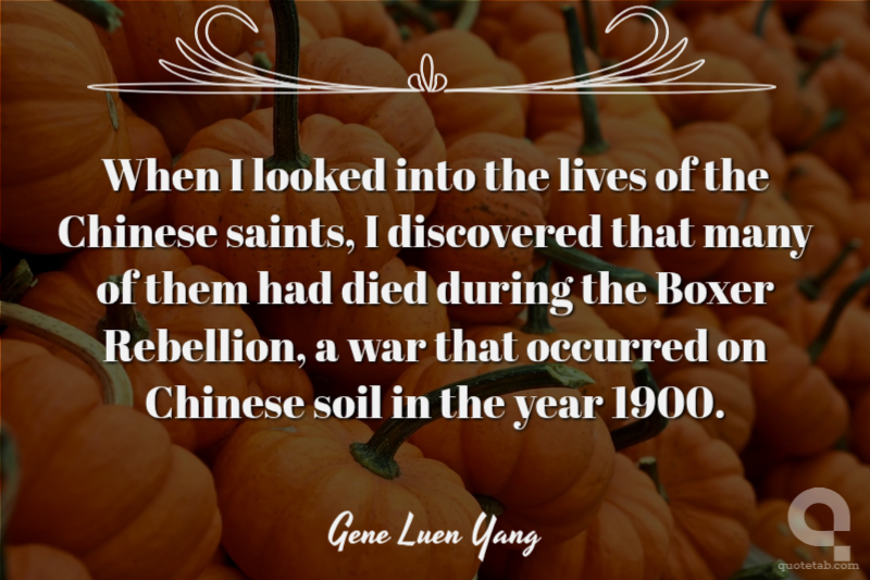 When I looked into the lives of the Chinese saints, I discovered that many of them had died during the Boxer Rebellion, a war that occurred on Chinese soil in the year 1900. Gene Luen Yang