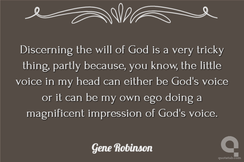 Discerning the will of God is a very tricky thing, partly because, you know, the little voice in my head can either be God's voice or it can be my own ego doing a magnificent impression of God's voice. Gene Robinson