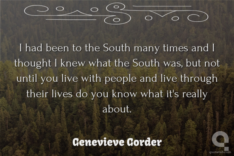I had been to the South many times and I thought I knew what the South was, but not until you live with people and live through their lives do you know what it's really about. Genevieve Gorder