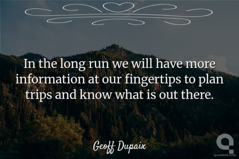 In the long run we will have more information at our fingertips to plan trips and know what is out there. Geoff Dupaix