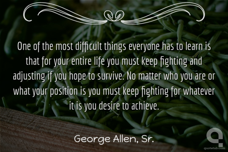 One of the most difficult things everyone has to learn is that for your entire life you must keep fighting and adjusting if you hope to survive. No matter who you are or what your position is you must keep fighting for whatever it is you desire to achieve. George Allen, Sr.