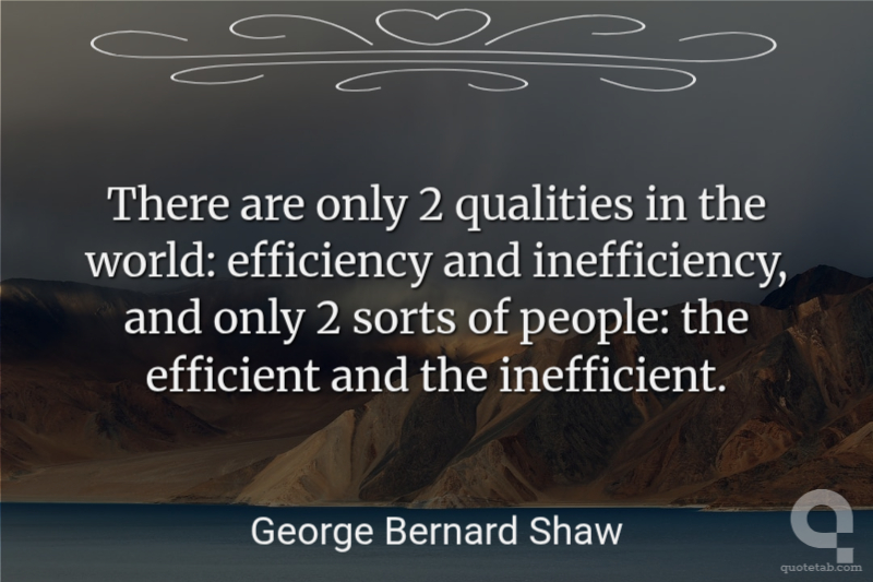 There are only 2 qualities in the world: efficiency and inefficiency, and only 2 sorts of people: the efficient and the inefficient. George Bernard Shaw