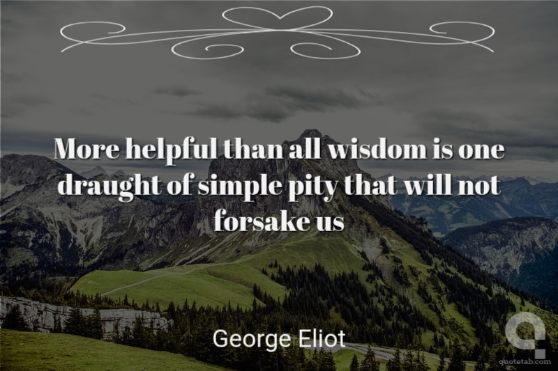 More helpful than all wisdom is one draught of simple pity that will not forsake us George Eliot