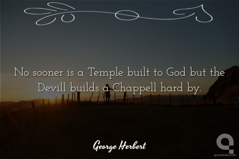 No sooner is a Temple built to God but the Devill builds a Chappell hard by. George Herbert
