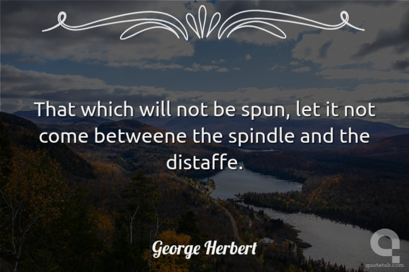 George Herbert That which will not be spun, let it not come betweene the spindle and the distaffe.
