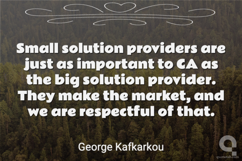 Small solution providers are just as important to CA as the big solution provider. They make the market, and we are respectful of that. George Kafkarkou