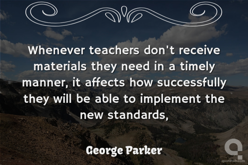 Whenever teachers don't receive materials they need in a timely manner, it affects how successfully they will be able to implement the new standards, George Parker