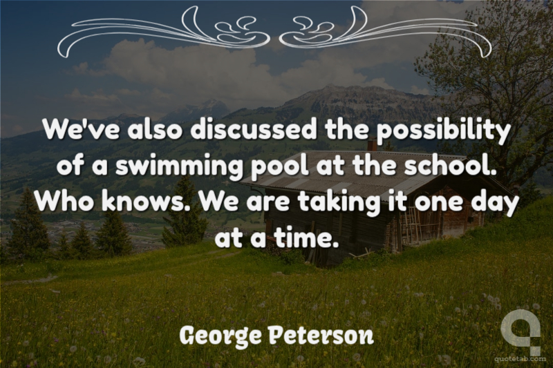 We've also discussed the possibility of a swimming pool at the school. Who knows. We are taking it one day at a time. George Peterson