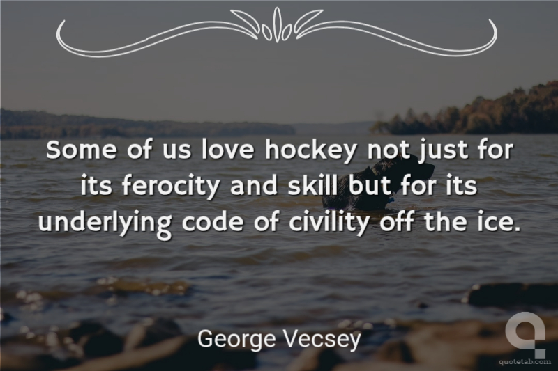 Some of us love hockey not just for its ferocity and skill but for its underlying code of civility off the ice. George Vecsey