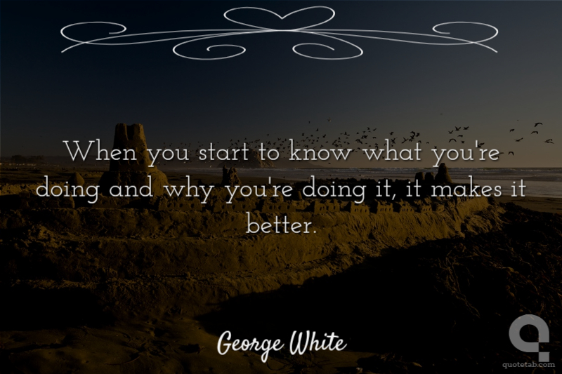 When you start to know what you're doing and why you're doing it, it makes it better. George White