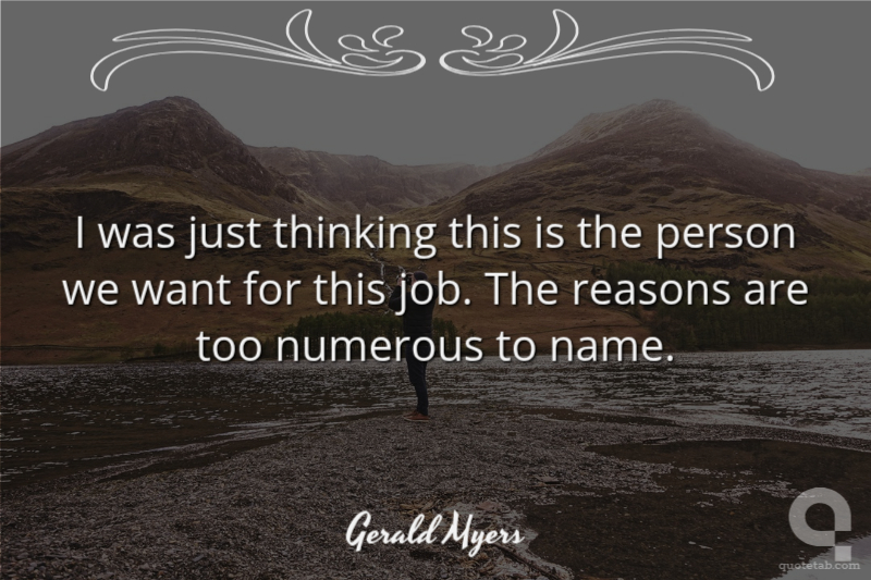 I was just thinking this is the person we want for this job. The reasons are too numerous to name. Gerald Myers