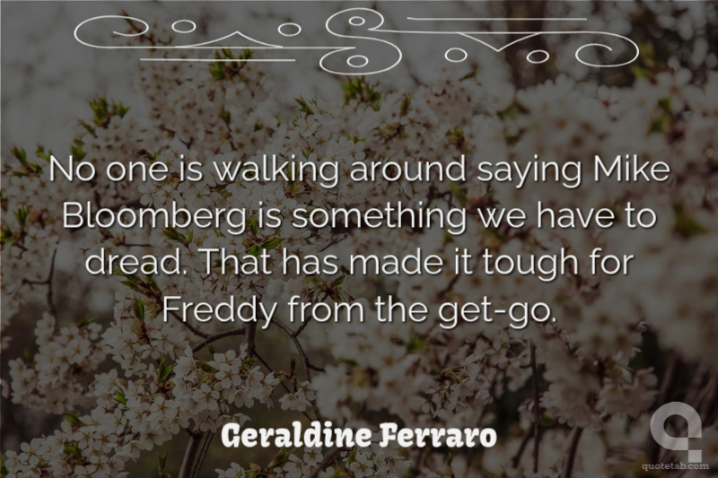 No one is walking around saying Mike Bloomberg is something we have to dread, ... That has made it tough for Freddy from the get-go. Geraldine Ferraro