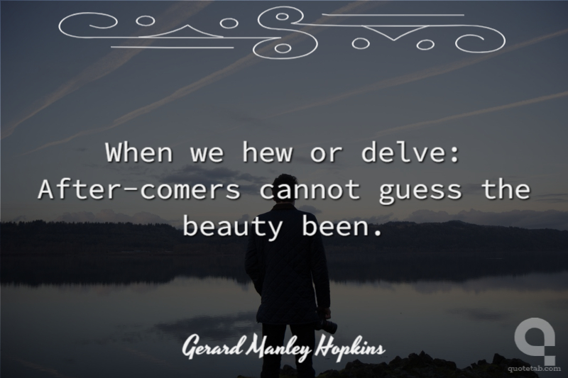Gerard Manley Hopkins When we hew or delve: After-comers cannot guess the beauty been.