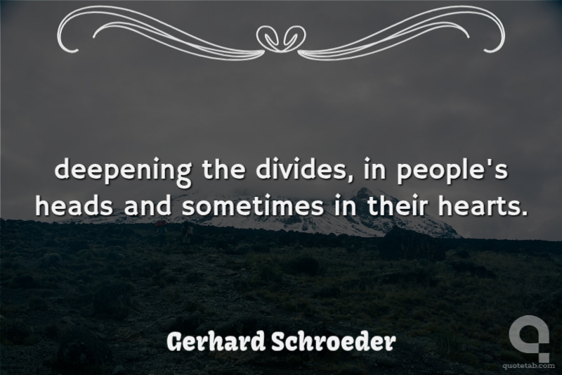 deepening the divides, in people's heads and sometimes in their hearts. Gerhard Schroeder