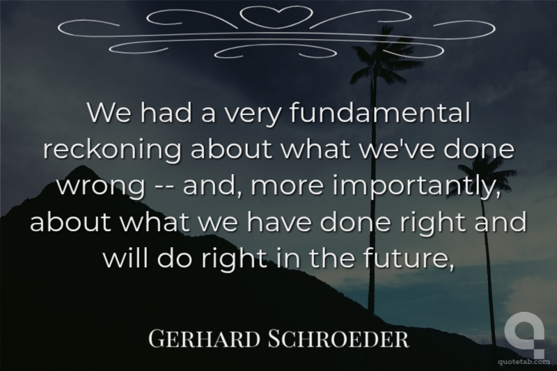 We had a very fundamental reckoning about what we've done wrong -- and, more importantly, about what we have done right and will do right in the future, Gerhard Schroeder