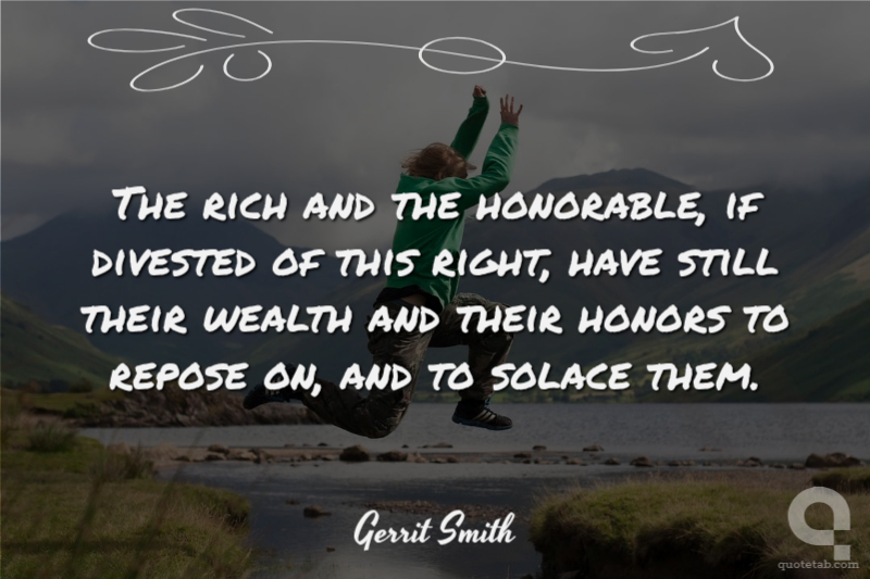 The rich and the honorable, if divested of this right, have still their wealth and their honors to repose on, and to solace them. Gerrit Smith