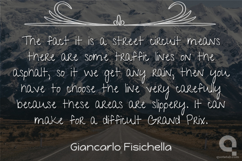 The fact it is a street circuit means there are some traffic lines on the asphalt, so it we get any rain, then you have to choose the line very carefully because these areas are slippery. It can make for a difficult Grand Prix. Giancarlo Fisichella