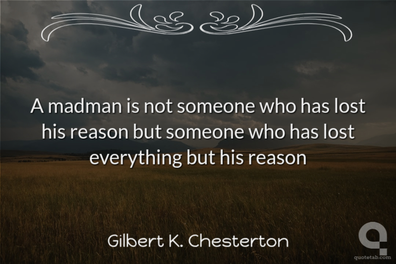 A madman is not someone who has lost his reason but someone who has lost everything but his reason Gilbert K. Chesterton
