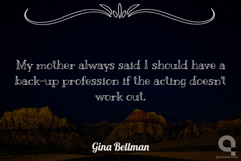 My mother always said I should have a back-up profession if the acting doesn't work out. Gina Bellman