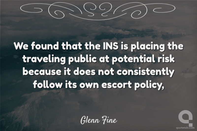 We found that the INS is placing the traveling public at potential risk because it does not consistently follow its own escort policy, Glenn Fine