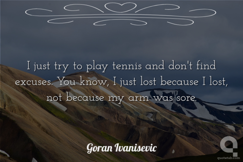 I just try to play tennis and don't find excuses. You know, I just lost because I lost, not because my arm was sore. Goran Ivanisevic