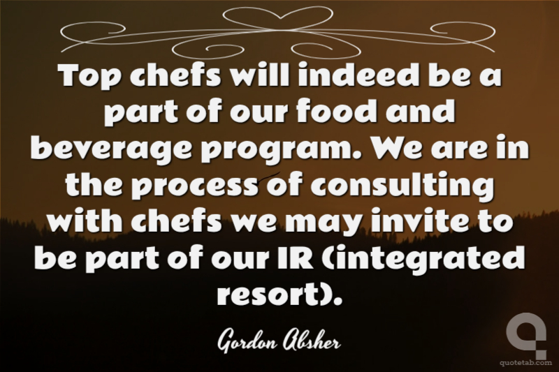 Top chefs will indeed be a part of our food and beverage program. We are in the process of consulting with chefs we may invite to be part of our IR (integrated resort). Gordon Absher