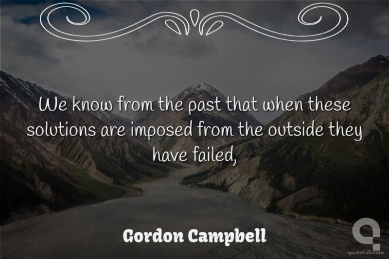 We know from the past that when these solutions are imposed from the outside they have failed, Gordon Campbell