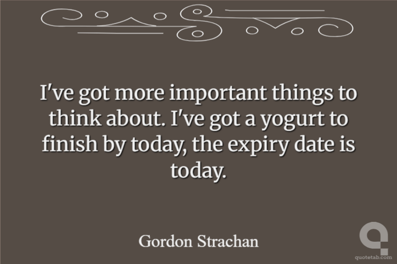 I've got more important things to think about. I've got a yogurt to finish by today, the expiry date is today. Gordon Strachan