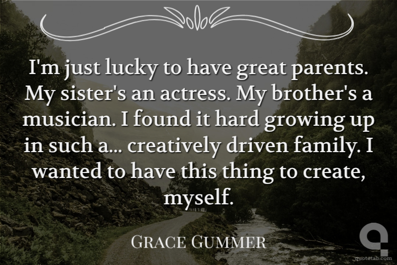 I'm just lucky to have great parents. My sister's an actress. My brother's a musician. I found it hard growing up in such a... creatively driven family. I wanted to have this thing to create, myself. Grace Gummer