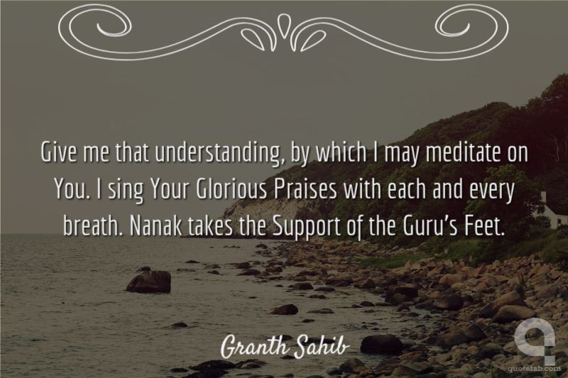 Give me that understanding, by which I may meditate on You. I sing Your Glorious Praises with each and every breath. Nanak takes the Support of the Guru's Feet. Granth Sahib