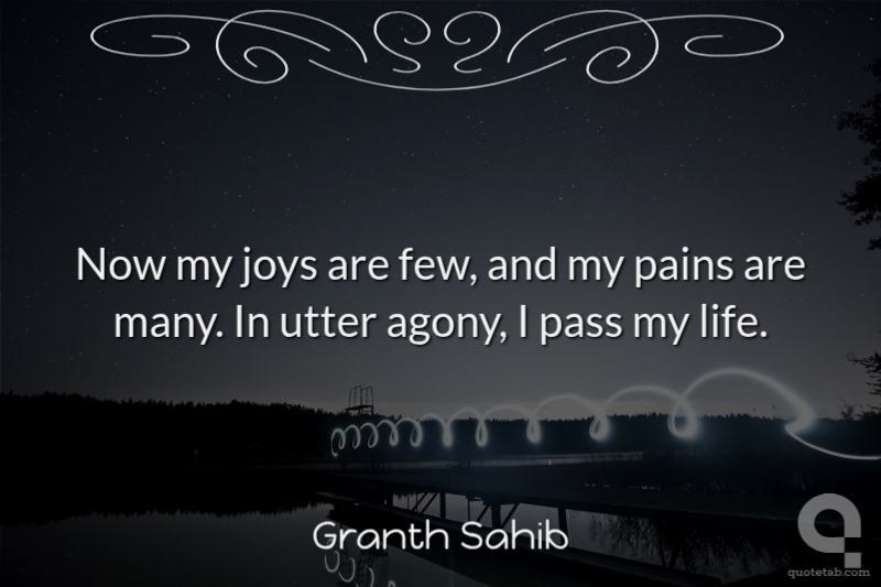 Now my joys are few, and my pains are many. In utter agony, I pass my life. Granth Sahib
