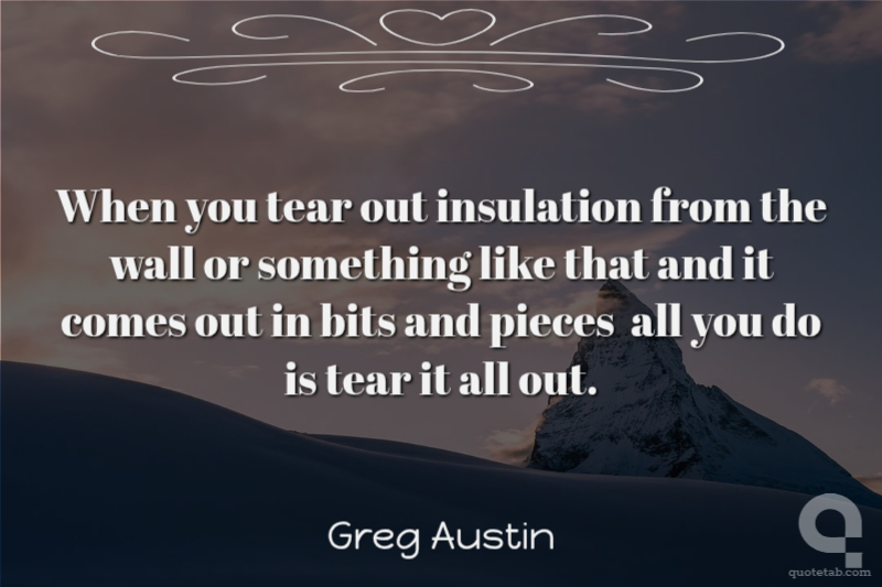 When you tear out insulation from the wall or something like that and it comes out in bits and pieces all you do is tear it all out. Greg Austin