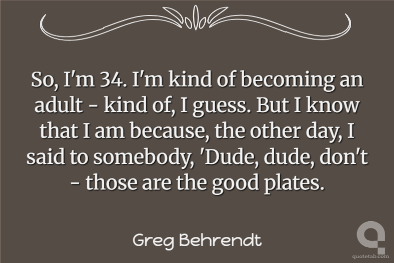 So, I'm 34. I'm kind of becoming an adult - kind of, I guess. But I know that I am because, the other day, I said to somebody, 'Dude, dude, don't - those are the good plates. Greg Behrendt