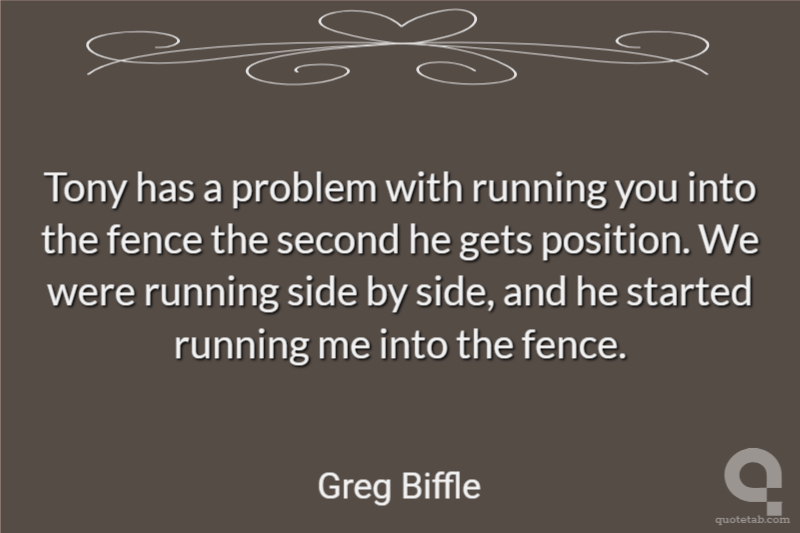 Tony has a problem with running you into the fence the second he gets position. We were running side by side, and he started running me into the fence. Greg Biffle