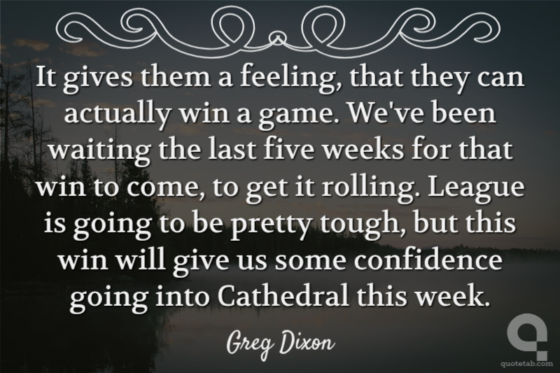 It gives them a feeling, that they can actually win a game. We've been waiting the last five weeks for that win to come, to get it rolling. League is going to be pretty tough, but this win will give us some confidence going into Cathedral this week. Greg Dixon