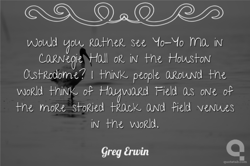 Would you rather see Yo-Yo Ma in Carnegie Hall or in the Houston Astrodome? ... I think people around the world think of Hayward Field as one of the more storied track and field venues in the world. Greg Erwin