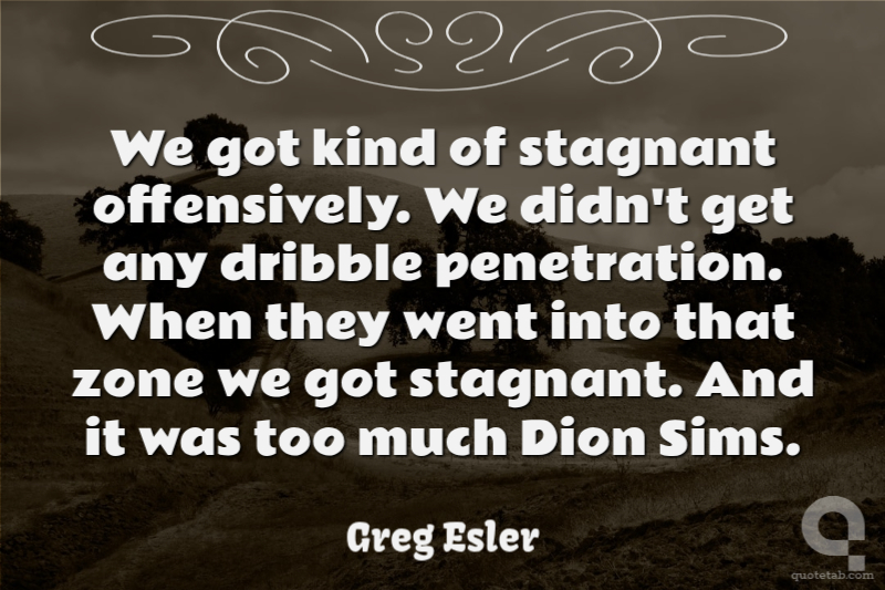 We got kind of stagnant offensively. We didn't get any dribble penetration. When they went into that zone we got stagnant. And it was too much Dion Sims. Greg Esler